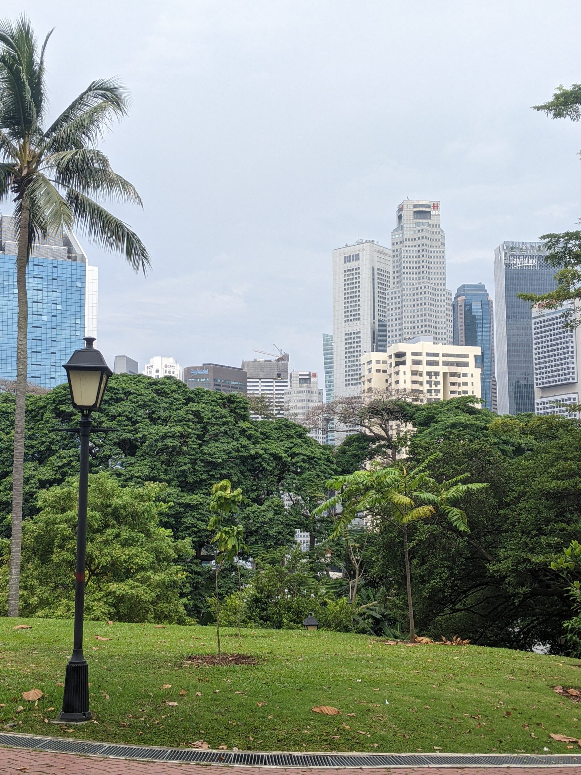 Danach ging es weiter zum Fort Canning Park. Er war relativ klein im Vergleich zur Stadt, war aber sehr schön mit vielen verschiedenen Pflanzen. Es gab Bäume und Sträucher dessen Blätter größer waren als meine Schuhe (ich habe schon Schuhgröße 41). Außerdem war es auch total heiß und schwül und echt anstrengend auf den kleinen Hügel zu laufen. Es gab aber öfters kleine Banken, wo man sich ausruhen konnte und ganz oben konnte man die Stadt sehen. Nachdem ich einmal im Kreis gelaufen bin, lief ich in Richtung Chinatown. Ich fand Chinatown jetzt nicht so besonders, aber vielleicht habe ich auch nicht alles gesehen. Danach fuhr ich dann mit der MRT (U-Bahn) zurück zum Hostel.