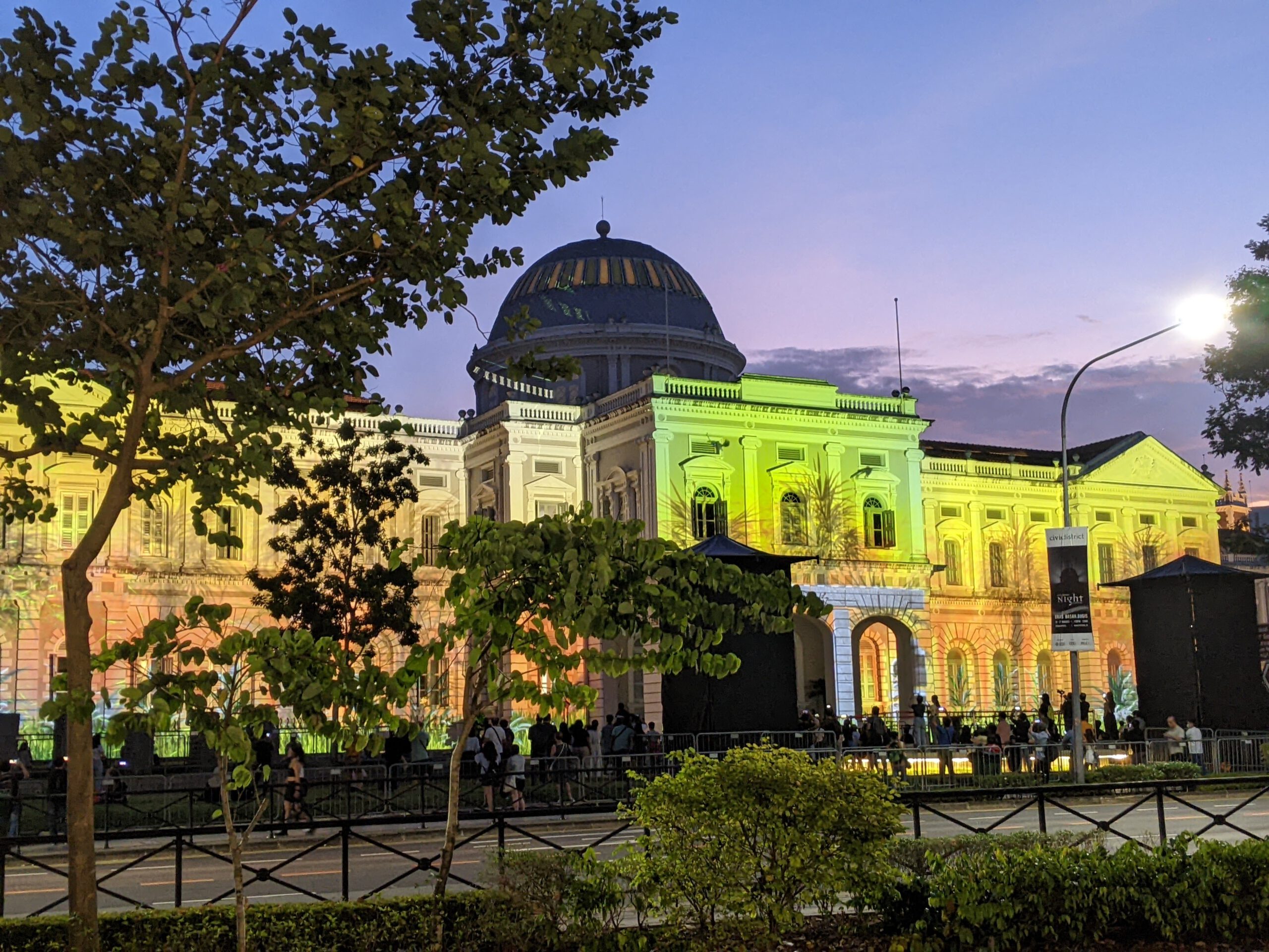 Auf dem Weg habe ich ein paar Plakate gesehen, auf denen das Nightfest in Singapur geschrieben war. Es hörte sich interessant an, sodass ich abends mich auf den Weg in die Stadt machte und hinging. Es war bunt mit viel Musik und vor allem die Lichtershow an der Fassade des Nationalmuseums war ein Highlight. Sie zeigte die Geschichte Singapurs sowie auch Mythen. Wer möchte kann sich weiter unten die Show anschauen. Ein bisschen weiter weg vom Museum gab es eine Straße in der laut Musik lieft und die Menschen dazu tanzten. Es war ein sehr schöner Abend, aber am Ende war ich trotzdem total fertig. Das Fest wird jedes Jahr im August in der Innenstadt Singapurs ausgetragen.
